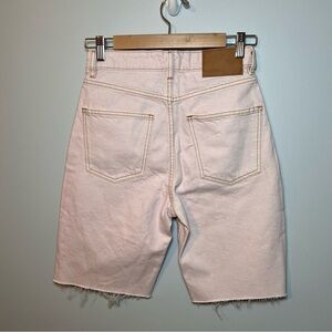 ZARA Light Pink Denim Shorts Size 2 Bermuda Denim -Raw Hem -High Waist