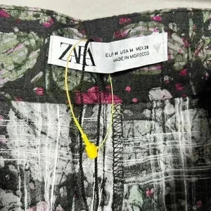 ZARA Lightweight Crepey Semi Sheer Wide Leg Ibiza Floral Pants Women Medium