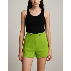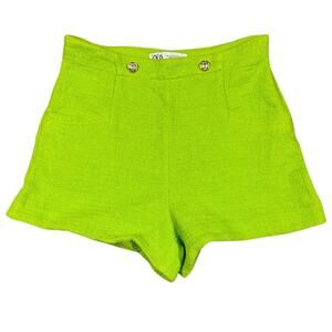 Add a pop of color to your wardrobe with these eye-catching lime green shorts from ZARA. Designed with a flattering high-rise fit, textured cotton fabric, and polished gold-tone buttons. These shorts are fully lined and perfect for summer styling.
