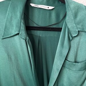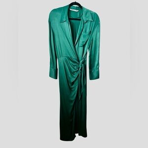 ZARA Limited Edition Green Long Sleeves Maxi Wrap Around Medium Cocktail Dress
