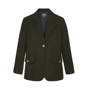 wool blend, dark olive green, khaki green, tailored blazer, gold buttons, structured fit, fall fashion, winter wardrobe, statement blazer, limited edition, Into the Classics, timeless style, versatile outerwear