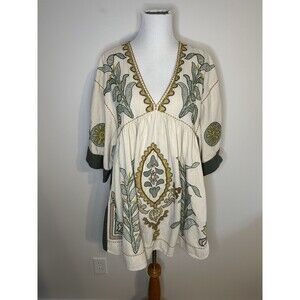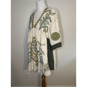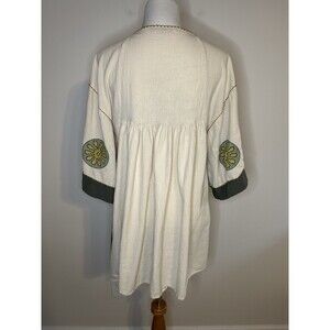 ZARA Linen Blend Embroidered Babydoll Dress Boho Peasant Sz Small