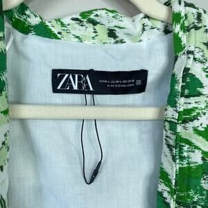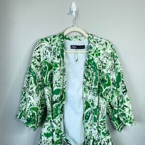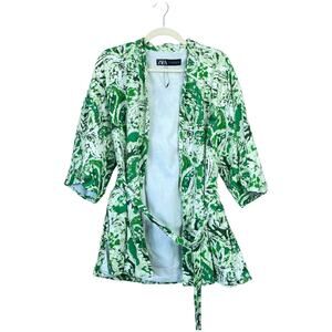 ZARA Linen Blend Green Paisley Print Tie Front Kimono Size Large Beach Resort