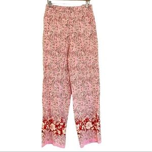 ZARA Linen Blend Paisley Floral Printed Pull On Wide Leg Trousers Size L NEW