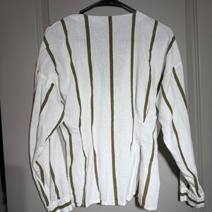 ZARA Linen Blend Striped Button Front Blouse | Oversized Fit | Size S