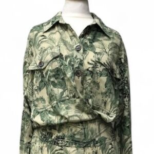 Zara safari dress in green. Blogger favorite. Universally flattering. Midi dress with a shirt collar, long cuffed sleeves, side pockets, buttoned flap chest pockets, adjustable belted wrap waist with button fastening to get the correct sizing, and split hem at the sides. Linen blend. Like new.