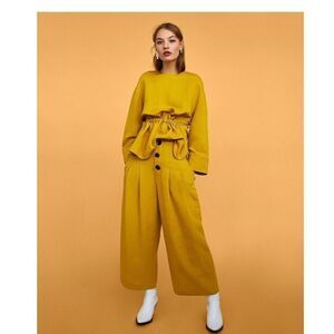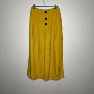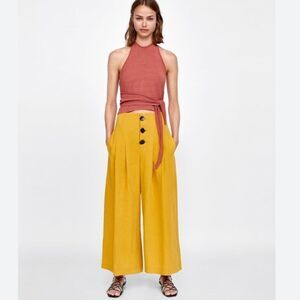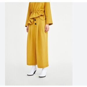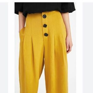 ZARA Linen Pleated Pants with Buttons trousers Yellow