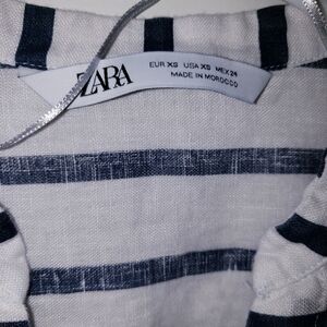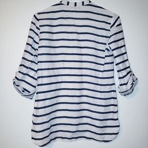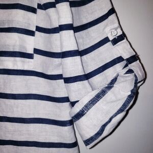 Excellent Condition, Navy Blue and White Button Down. 100% Linen. Its a Bit Sheer.