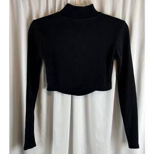 ZARA Long Sleeves Button-Up Mock Neck Cropped Top Black M eclectic 68-48