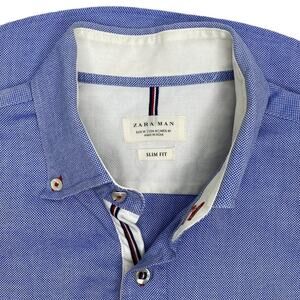 ZARA MAN Button Down Long Sleeve Shirt Slim Fit Blue Men's Size Medium