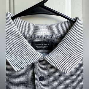 ZARA MAN Polo Shirt Size S Black White Microstripe 100% Cotton Summer Minimalist