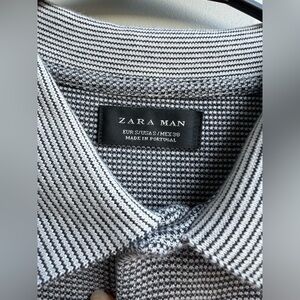 ZARA MAN Polo Shirt Size S Black White Microstripe 100% Cotton Summer Minimalist