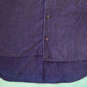 ZARA MAN Slim fit navy with white tiny polka dots long sleeve button up size L