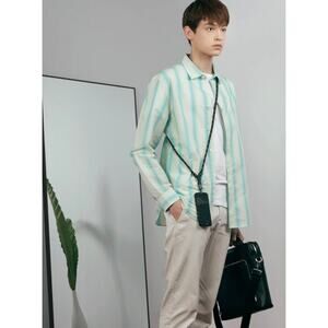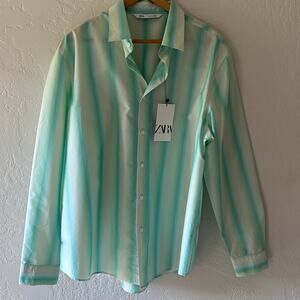 ZARA MEN | Cotton Striped Shirt Water Green NEW Size Large 4309/730/512 Dadcore