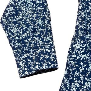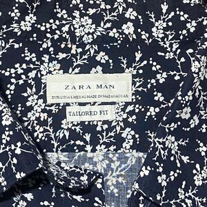 ZARA MEN Tailored Fit Long Sleeve Button Shirt Size L Navy Blue White Floral