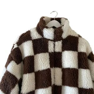 ZARA MEN combination checkered/ plaid fleece jacket Oversized Cozy SZ S