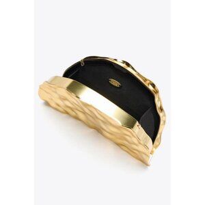 Half-moon rigid bag. Metallic effect. Detachable metallic chain strap to wear across the body. Magnetic closure.