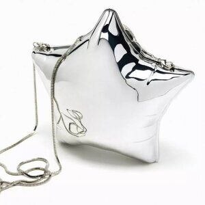 Zara Star Shaped Minaudière Shoulder Crossbody Bag Clutch Silver Metallic