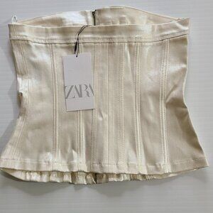 ZARA METALLIC STRAPLESS TOP CREAM SIZE S| 4661/003
