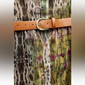 ZARA METALLIC THREAD BELTED PRINTED DRESS