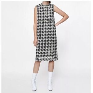 ZARA METALLIC THREAD DRESS WITH CHAIN TRIMS BLACK/WHITE Size Small