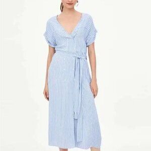 ZARA MIDI V NECK SHIRT DRESS STRIPED BLUE WHITE 7784/072 XSMALL