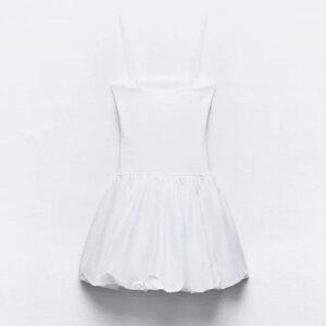 ZARA MIXED RIB POPLIN BALLOON DRESS