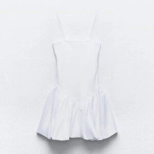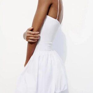 ZARA MIXED RIB POPLIN BALLOON DRESS