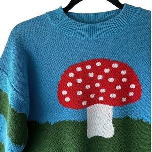 Colorful and whimsical cotton blend mushroom sweater from ZARA featuring a checkerboard back design