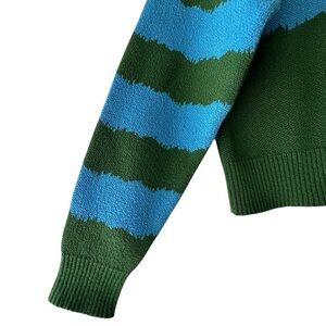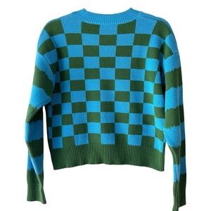 ZARA MUSHROOM SWEATER LIKE NEW BLUE & GREEN CHECKERBOARD COTTON BLEND | SMALL