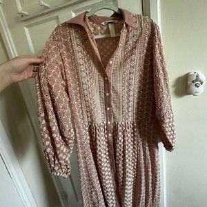 ZARA Malina Midi Embroidered Balloon Sleeves Shirt Dress