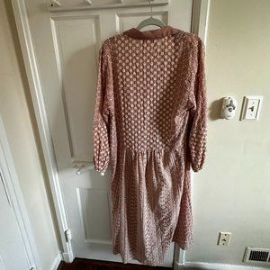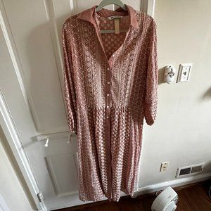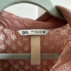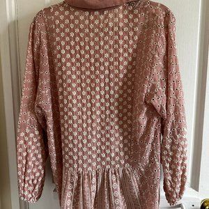 Zara Pink Floral Eyelet Embroidered Long Sleeve Dress with Collar - Size Medium