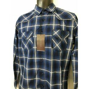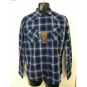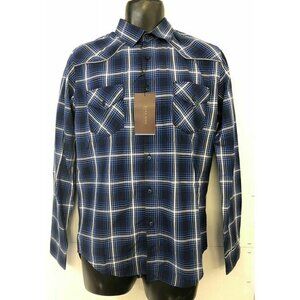 ZARA Man Denim Collection Slim Fit Blue Plaid Long Sleeve Shirt Size M
