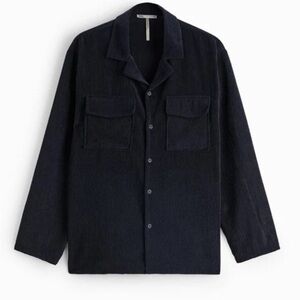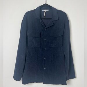 ZARA Man Large Navy Blue Relaxed Fit Corduroy Suit Button Down Shirt Shacket