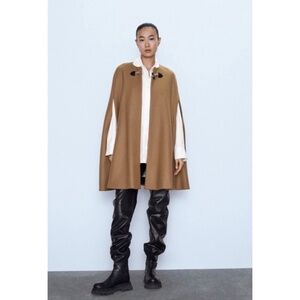 ZARA Manteco Wool Toggle Cape Jacket Coat Camel Brown Swingy Pockets X-Small
