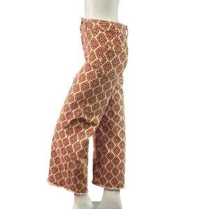 This is a pair of ZARA Marine straight wide leg jeans in an ecru and brick red print, women's size 4. Excellent condition. Measurements;