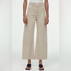 ZARA Marine Straight Wide Leg Flare Jeans High Waisted Tan Raw Hem