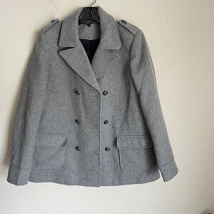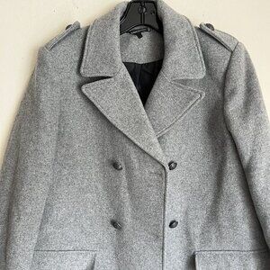 ZARA Marl Gray Wool Blend Double Breasted Coat Jacket Women’s Size Large L