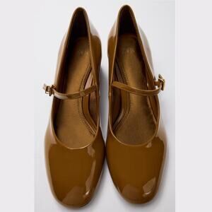ZARA Mary Jane Patent Heels NWT – Ochre Buckled Block Heels, Size 8 & 9