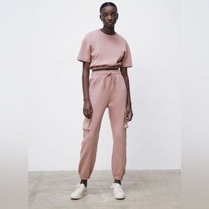 ZARA Matching Sweat Set Cargo Joggers Sweatshirt Top Two Piece Loungewear Set M