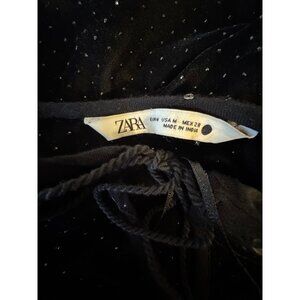 ZARA Medium Black Velvet & Sequins Long Sleeve Top Delicate Tie Neckline