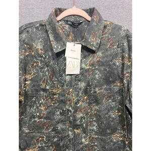ZARA Mens Camouflage Outdoors Denimwear Button Down Long Sleeve Overshirt Size M