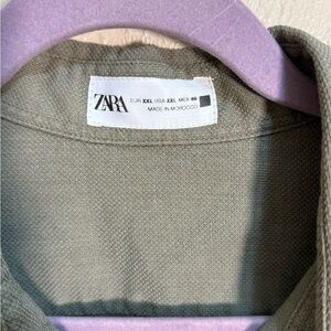 ZARA Men’s Long Sleeve Button Down Shirt Solid Green Size XXL Slim Fit