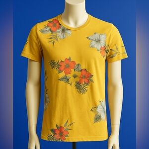ZARA Men’s Mustard Yellow Floral T-Shirt Size S – Tropical Summer Vibe