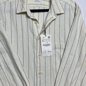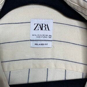 ZARA men’s relaxed fit shirt — size XL, beige with subtle navy stripes.