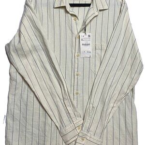 ZARA Men’s Relaxed Fit Shirt XL Beige Striped Button-Up NWT