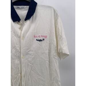 ZARA Men's White-Navy Bai Di Paraggi Embroidered Button-Up Short Sleeve Polo Shirt SZ M
