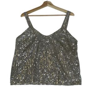 ZARA Metallic Gold / Beige Womens SIZE LARGE Sequined Cropped Cami Camisole Tank