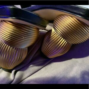 Geometric gold heel. Squared heels and toes.