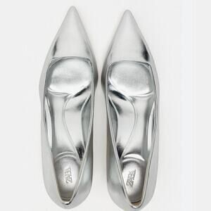 ZARA Metallic Pointed Toe Heels NWT | Silver Pumps | Size 7.5